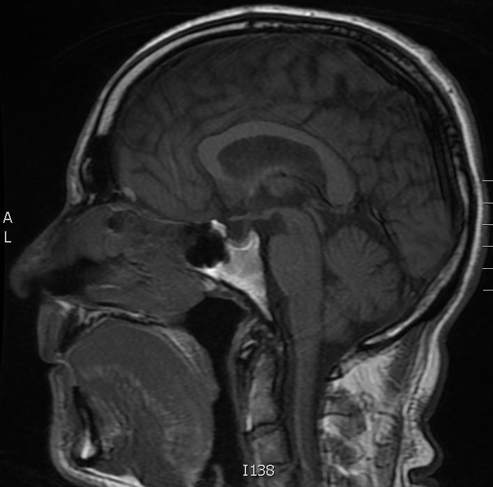 OK – time to review, can you tell which sequence is T1W and which is T2W? Look at the two saggital MRI’s below and decide which is which, then scroll down for the answer.